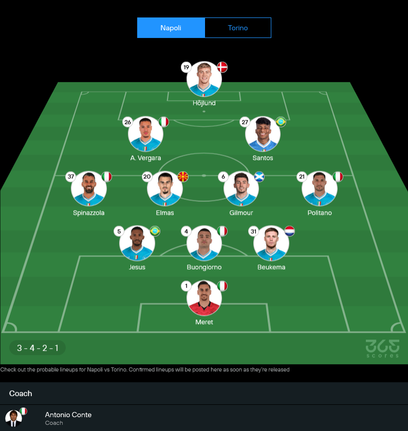 คอนเต้คุมทรงทีมแบบเน้นความแน่นอน แผนหลักยังเป็น 3-4-2-1 ที่เน้นวิงแบ็กดันสูงแล้วให้ตัวรุกสองคนคอยปั่นเกมหลังหน้าเป้า เกมนี้คีย์อยู่ที่จังหวะเปลี่ยนสปีด ถ้านาโปลีเร่งตอนบอลอยู่เท้าเอลมาสกับกิลมัวร์ได้เมื่อไร โตริโน่จะโดนบีบจนถอยลึกเอง นี่แหละมุมของ วิเคราะห์บอล ที่เห็นภาพชัดมาก