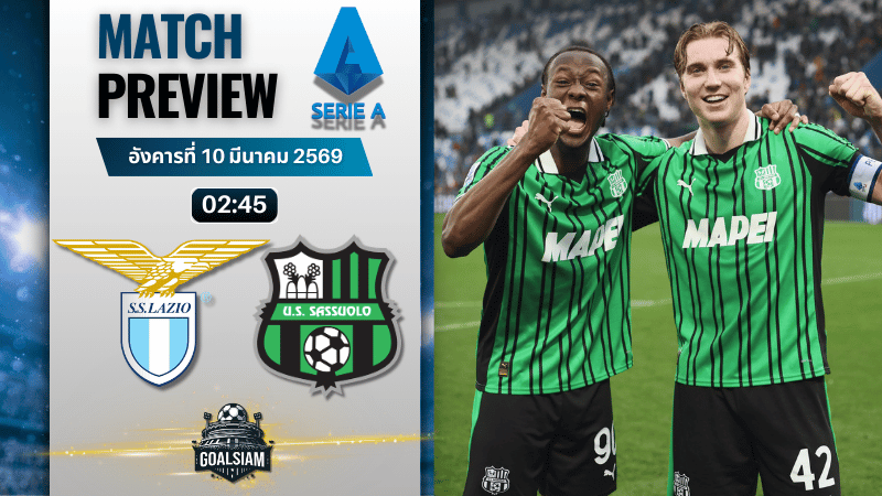 ลาซิโออาจมีภาษีจากชื่อและเสียง แต่ซาสซูโอโล่ไม่ใช่ทีมที่ยอมง่าย ถ้าเจ้าบ้านเปิดพื้นที่เมื่อไร ทีมเยือนพร้อมสวนให้เจ็บทันที