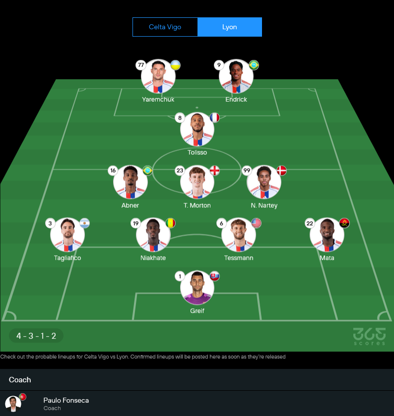 ฝั่งลียงชนะนัดเดียวจาก 5 เกมหลัง ที่น่าห่วงสุดคือเกมเยือนซึ่งเสียประตูค่อนข้างง่าย ยิ่งเจอทีมที่กำลังเล่นด้วยความมั่นใจแบบเซลต้า งานนี้บอกเลยว่าเหนื่อยแน่