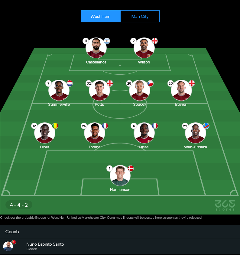 นูโน่ เอสปิริโต้ ซานโต้ เตรียมวางหมากในระบบ 4-4-2 เน้นความแน่นตรงกลางและรอจังหวะสวนกลับเร็วผ่าน โบเว่น กับคู่กองหน้าอย่าง วิลสัน และ กาสเตญานอส ในมุม วิเคราะห์บอล เกมนี้ เวสต์แฮมคงไม่บุกแลกแบบบ้าระห่ำ แต่จะเล่นแบบรัดกุมแล้วรอโอกาสทีเด็ดจากจังหวะเดียวมากกว่า
