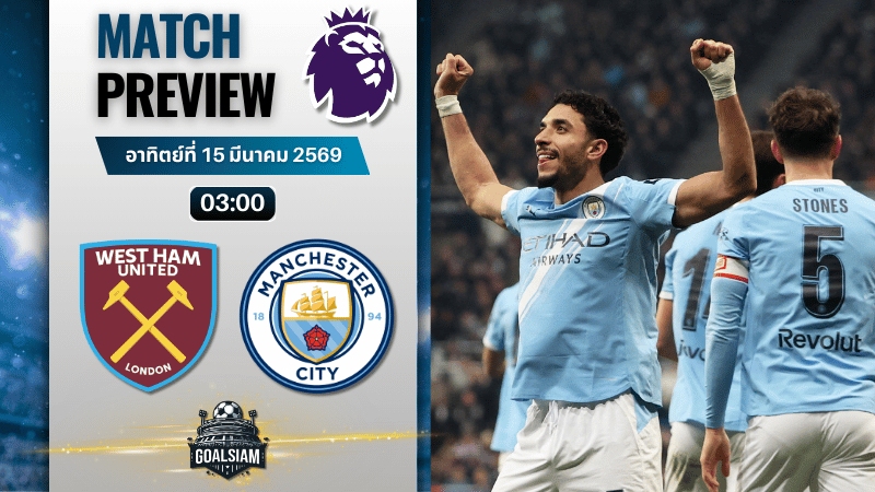 วิเคราะห์บอลก่อนเกม 15 มีนาคม 2569 เวสต์แฮม ดวล แมนซิตี้ ศึกนี้ค้อนรับแรงกระแทก เรือใบมีสิทธิ์บุกเช็กบิล