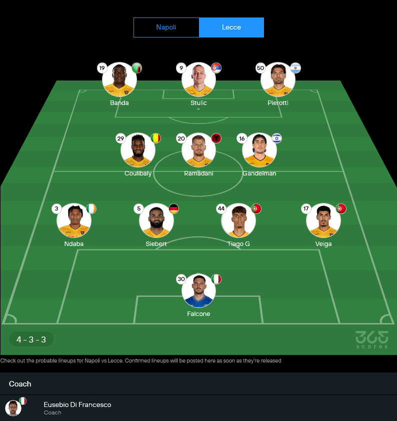 | 03/05/25 | เซเรีย อา | เลชเช่ 0-1 นาโปลี |