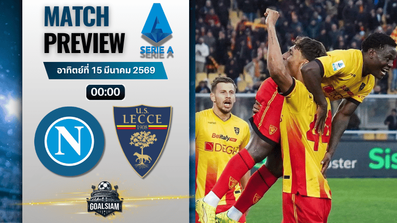 วิเคราะห์บอลก่อนแข่ง 15 มีนาคม 2569 นาโปลีลุยเชือดเลชเช่ งานนี้เจ้าถิ่นน่ากินเต็ม