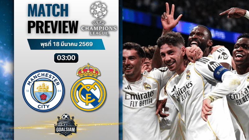 ทีมงาน GOALSIAM บอกเลยว่าเกมนี้เดือดตั้งแต่ยังไม่เขี่ยบอล เมื่อ แมนซิตี้ ต้องเปิดบ้านรับมือ เรอัล มาดริด ในศึกยูฟ่า แชมเปี้ยนส์ ลีก คืนวันพุธที่ 18 มีนาคม 2569 เวลา 03:00 น. สถานการณ์บีบให้เจ้าถิ่นต้องลุยเต็มสูบ หลังเลกแรกพลาดท่าแพ้มาก่อน 0-3 เพราะฉะนั้นเกมนี้ไม่มีพื้นที่ให้เล่นแบบประคองแล้ว ต้องบุก ต้องเสี่ยง และต้องหวังเอาประตูคืนให้เร็วที่สุด