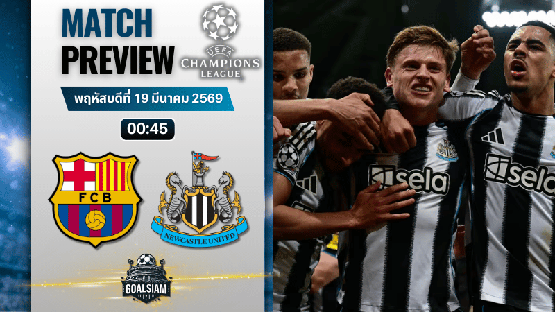 วิเคราะห์บอลก่อนแข่ง 19 มีนาคม 2569 บาร์เซโลน่า vs นิวคาสเซิ่ล เลกสองเดือดที่คัมป์ นู ใครคมกว่ามีสิทธิ์เข้ารอบ