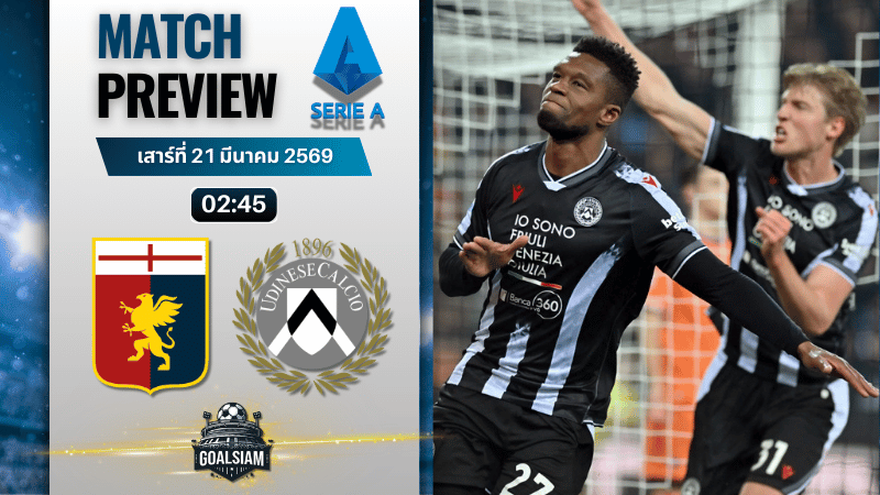 วิเคราะห์บอลก่อนแข่ง 21 มีนาคม 2569 เจนัว vs อูดิเนเซ่ ศึกนี้มีเดือดแน่ เจ้าถิ่นลุ้นเฮต่อหน้าแฟนบอล เกมกินเหลี่ยมที่สายเชียร์ห้ามพลาด