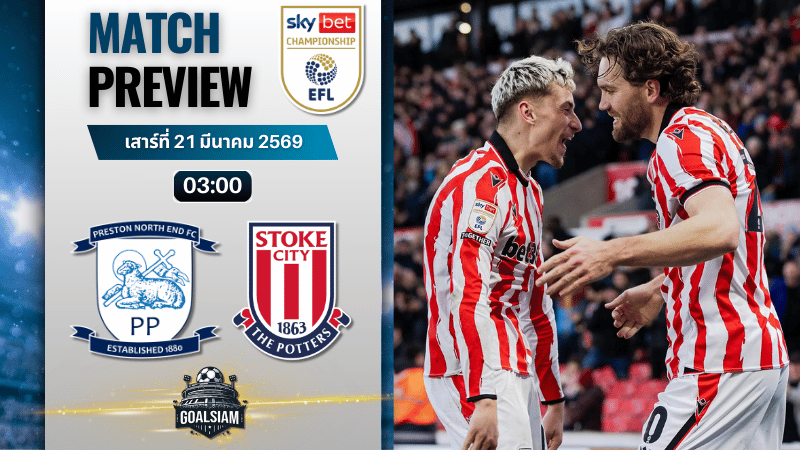 วิเคราะห์บอลก่อนแข่ง 21 มีนาคม 2569 เปรสตัน นอร์ธเอนด์ vs สโต๊ค ซิตี้ ศึกแชมเปี้ยนชิพที่เดือดกว่าราคา เปิดหน้าชนกันแบบไม่มีถอย