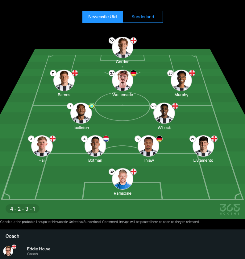 นิวคาสเซิ่ลของ เอ็ดดี้ ฮาว ยังมีตัวเจ็บเล่นงานหลายราย ไม่ว่าจะเป็น ฟาเบียน ชาร์, บรูโน่ กีมาไรส์, เอมิล คราฟธ์ และ ลูอิส ไมลี่ย์ ส่วน ซานโดร โตนาลี่ ยังต้องเช็กความพร้อม ทำให้เกมนี้มีแนวโน้มจะมาในระบบ 4-2-3-1 ใช้ความเร็วด้านข้างและแรงปะทะแดนกลางเข้าบดคู่แข่ง ซึ่งเป็นมุมสำคัญของ วิเคราะห์บอล คู่นี้ เพราะถ้าเจ้าบ้านขึ้นเกมได้ลื่น ซันเดอร์แลนด์มีสิทธิ์โดนบี้หนัก
