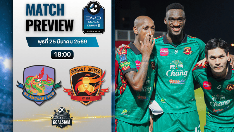 วิเคราะห์บอลก่อนแข่ง 25 มีนาคม 2569 เกษตรศาสตร์ เอฟซี vs ศรีสะเกษ ยูไนเต็ด ศึกตัดแต้มเดือดของทีมหนีตาย ปะทะทีมลุ้นเพลย์ออฟ ใครจะอยู่ใครจะร่วง