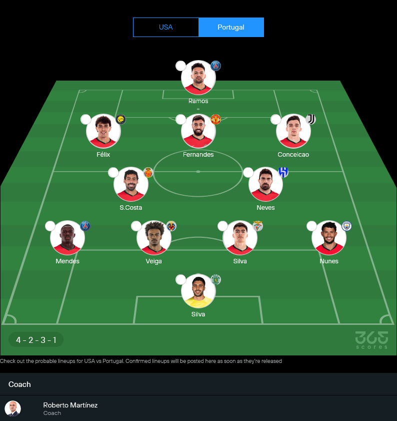 โรเบร์โต มาร์ติเนซ ไม่มีทั้ง คริสเตียโน่ โรนัลโด้, ดิโอโก้ คอสต้า, รูเบน ดิอาส และ แบร์นาโด้ ซิลวา แต่ขุมกำลังที่เหลือก็ยังแข็งพอจะคุมเกมได้ โดยเฉพาะ บรูโน่ แฟร์นานเดส, กอนซาโล่ รามอส, นูโน่ เมนเดส และกลุ่มมิดฟิลด์ที่คุณภาพสูง