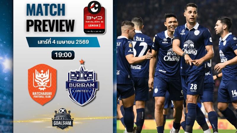 วิเคราะห์บอลก่อนเกม 4 เมษายน 2569 ราชบุรี เอฟซี vs บุรีรัมย์ ยูไนเต็ด บิ๊กแมตช์ไทยลีกเดือด ใครจะแกร่งพอคว้าชัย