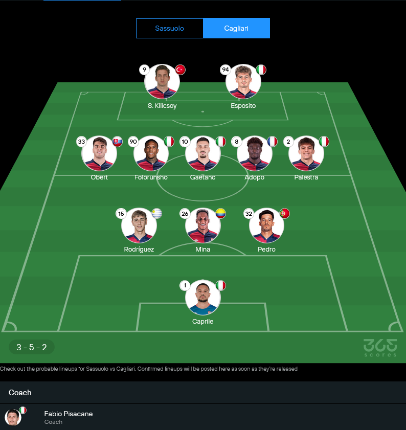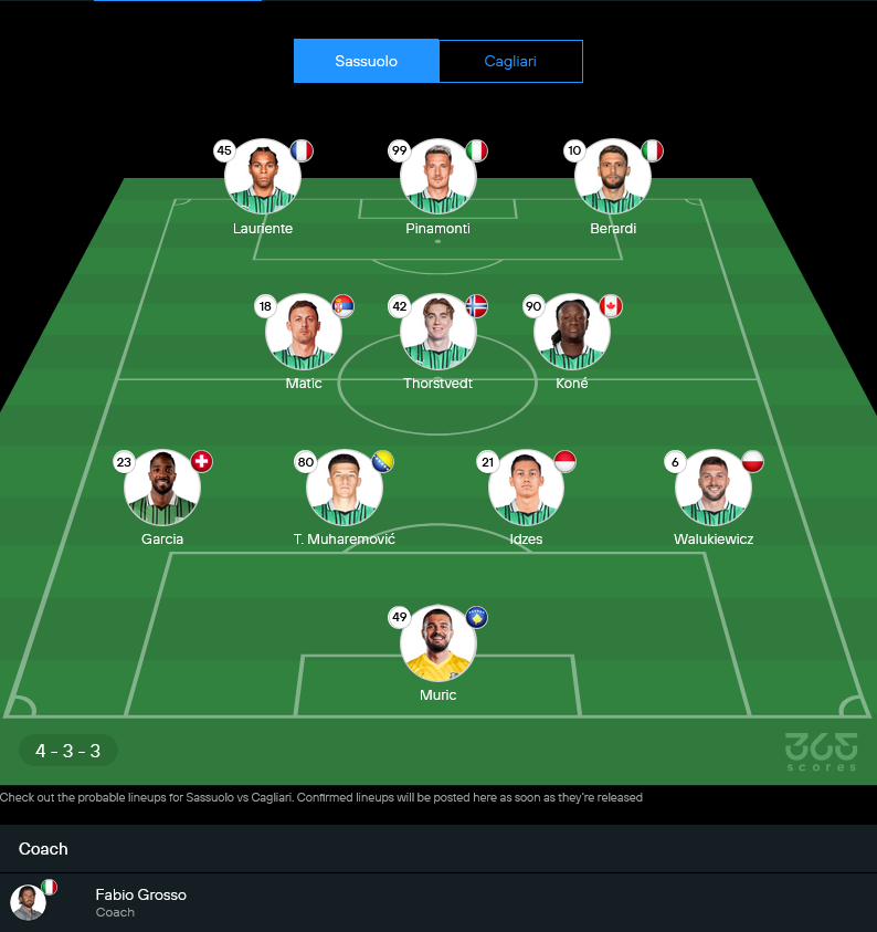 | 12/12/23 | เซเรีย อา | กายารี่ 2-1 ซาสซูโอโล่ |