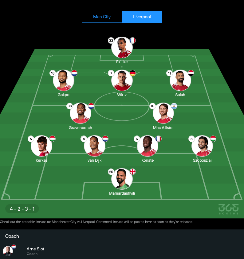 อาร์เน่อ สล็อต ต้องปวดหัวพอสมควร เพราะตัวเจ็บมีหลายราย ทั้ง อลิสซง, โจวานนี่ เลโอนี่, คอเนอร์ แบรดลีย์, วาตารุ เอ็นโด และ สเตฟาน ไบจ์เซติช ขณะที่ โมฮาเหม็ด ซาลาห์ กับ เจเรมี ฟริมปง ยังต้องเช็กฟิต เกมนี้ลิเวอร์พูลน่าจะมาในระบบ 4-2-3-1 หรือขยับยืนใกล้เคียง 4-2-3-1 ตามภาพที่ออกมา เพื่อเน้นความแน่นตรงกลางแล้วรอสวนกลับเร็วจากตัวรุก