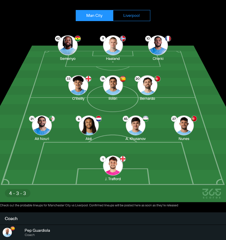 มู้ดการเล่น: ซิตี้น่าจะเป็นฝ่ายคุมบอล กดพื้นที่สูง และพยายามบีบให้ลิเวอร์พูลตั้งรับลึกตั้งแต่ต้นเกม