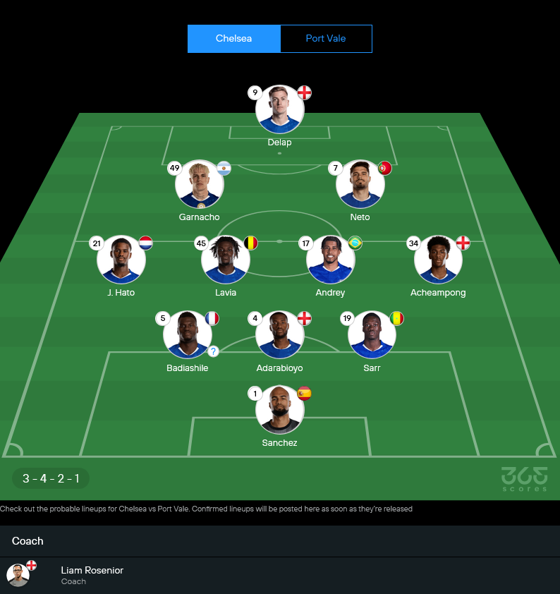 เชลซีของ เลียม โรซีเนียร์ ยังมีตัวเจ็บค้างอยู่หลายราย ไม่ว่าจะเป็น ฟิลิป ยอร์เกนเซ่น, ลีไว โคลวิลล์, เคเล็บ ไวลีย์ และ รีซ เจมส์ ส่วน เทรวอห์ ชาโลบาห์ กับ เจมี่ กิตเท่นส์ ยังต้องเช็กความฟิต ทำให้เกมนี้มีโอกาสสูงที่จะยึดแผน 3-4-2-1 เพื่อคุมจังหวะและเดินเกมรุกใส่ตั้งแต่ต้น