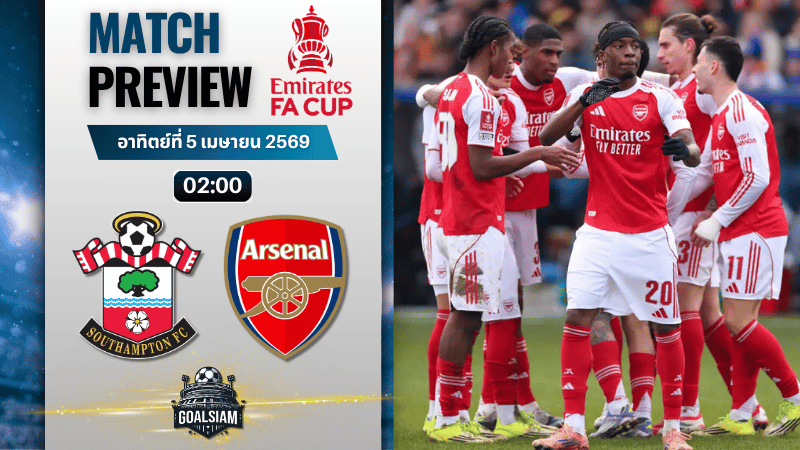 วิเคราะห์บอลก่อนแข่ง 5 เมษายน 2569 เดือดก่อนคิกออฟ เซาธ์แฮมป์ตัน vs อาร์เซน่อล เกมนี้ปืนใหญ่บุกล่าตั๋ว เอฟเอ คัพ แบบไม่มีถอย