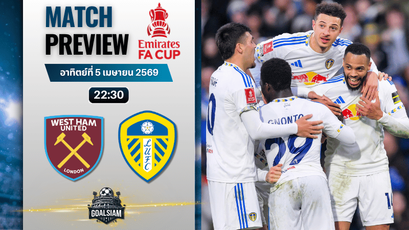 วิเคราะห์บอลก่อนเกม เอฟเอ คัพ อังกฤษ 5 เมษายน 2569 เวสต์แฮม vs ลีดส์ เกมนี้เดือดแน่ ขุนค้อนขอเชือด ยูงทองไม่ยอมง่าย