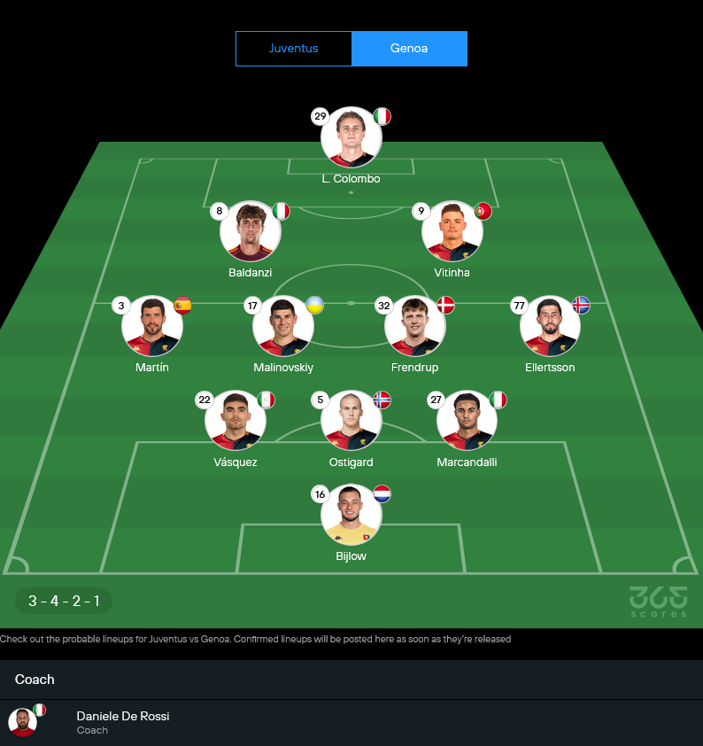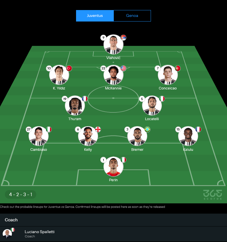 ยูเวนตุสของ ลูชาโน่ สปัลเล็ตติ เริ่มมีทรงมากขึ้นเมื่อแกนหลักทยอยกลับมา โดยเฉพาะ ดูซาน วลาโฮวิช ที่พร้อมยืนค้ำหน้า ส่วนเจนัวของ ดานิเอเล่ เด รอสซี่ ก็ไม่ใช่ทีมให้ผ่านง่ายๆ เพราะ 5 นัดหลังชนะถึง 3 เกม แถมเล่นกันเป็นระบบและสวนกลับมีพิษพอตัว