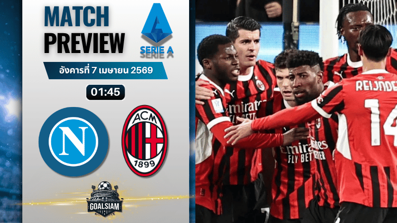 คืนวันอังคารที่ 7 เมษายน 2569 มีอีกหนึ่งเกมที่แฟนบอลอิตาลีต้องจับตา เมื่อ นาโปลี เปิดรัง สตาดิโอ ดีเอโก้ อาร์มานโด มาราโดน่า รับมือ เอซี มิลาน ในศึก กัลโช่ เซเรีย อา ที่บอกเลยว่าสูสีทุกมุม ทั้งฟอร์มล่าสุด คุณภาพนักเตะ และความเข้มข้นของแทคติก เกมนี้ไม่ใช่แค่ศึกของสองทีมใหญ่ แต่ยังเป็นคู่ที่สายลงทุนตามหา ทีเด็ดบอล ต้องอ่านให้ขาด เพราะมีโอกาสออกได้หลายหน้า แต่ภาพรวมยังเอียงไปทางเจ้าถิ่นที่กำลังมั่นใจ