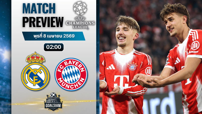 ทีมงาน GOALSIAM มองว่าเกมนี้สูสีแบบแท้จริง บาเยิร์นฟอร์มช่วงหลังดีกว่าและเล่นกันไหลลื่น แต่การบุกมาเยือนมาดริดในถ้วยนี้ไม่ง่ายแน่นอน เพราะราชันชุดขาวรู้วิธีเล่นเกมใหญ่เสมอ โดยเฉพาะเมื่อมีตัวจบสกอร์อย่าง เอ็มบัปเป้ กับ วินิซิอุส ที่พร้อมเปลี่ยนเกมได้ในไม่กี่วินาที