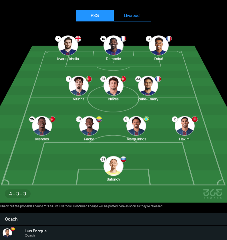 เปแอสเชมาในระบบ 4-3-3 ตามถนัด แม้จะมีตัวเจ็บอย่าง เซนนี มายูลู, แบรดลีย์ บาร์โกลา, ฟาเบียน รุยซ์ และ ก็องแต็ง เอ็นฌีย็องตู แต่แกนหลักยังอยู่กันครบ ในมุม วิเคราะห์บอล นัดนี้เจ้าบ้านยังดูพร้อมเปิดเกมรุกใส่เต็มที่