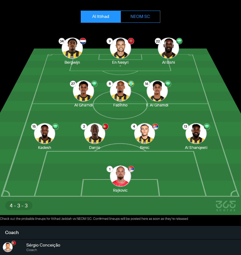 เจ้าบ้านจะไม่มี ซาด อัล มูซ่า ที่เจ็บ และ มุสซ่า ดิอาบี้ ที่ติดโทษแบน ทำให้เกมรุกต้องปรับพอสมควร แต่แกนหลักอย่าง ฟาบินโญ่, เบิร์กไวน์ และ เอน เนสรี ยังพร้อมลงครบ ในมุม วิเคราะห์บอล เกมนี้คาดว่าจะมาในระบบ 4-3-3 เน้นบุกจากด้านข้างและใช้ความคมของแนวรุกตัดสินเกม