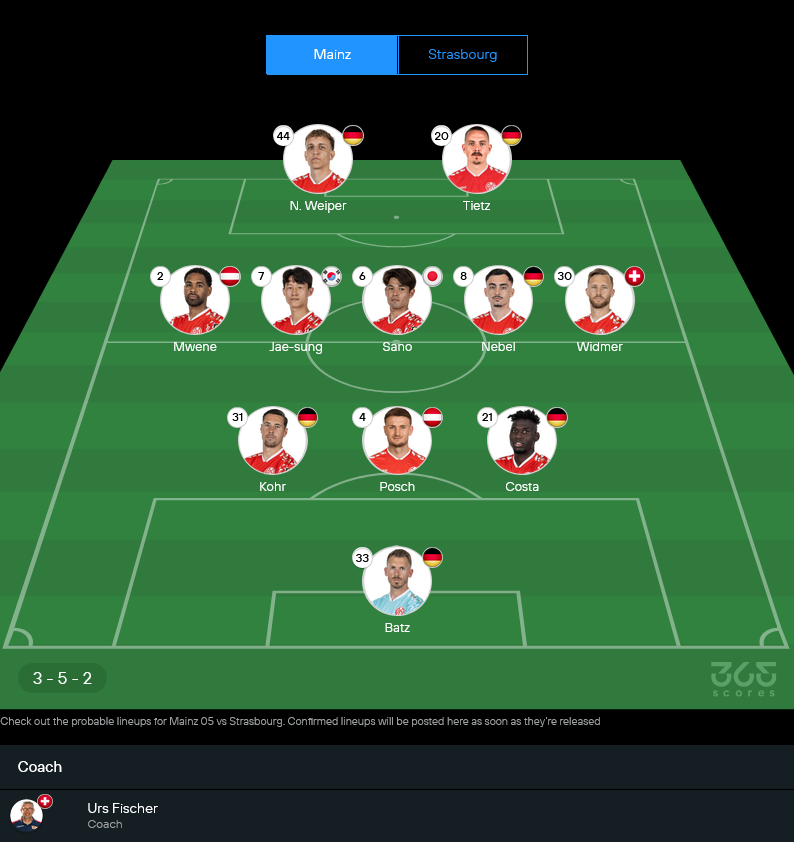 มู้ดการเล่น: สตราส์บูร์กจะเน้นความแน่นแล้วรอสวนกลับ ใช้ความเร็วเข้าทำในจังหวะที่ไมนซ์เปิดพื้นที่