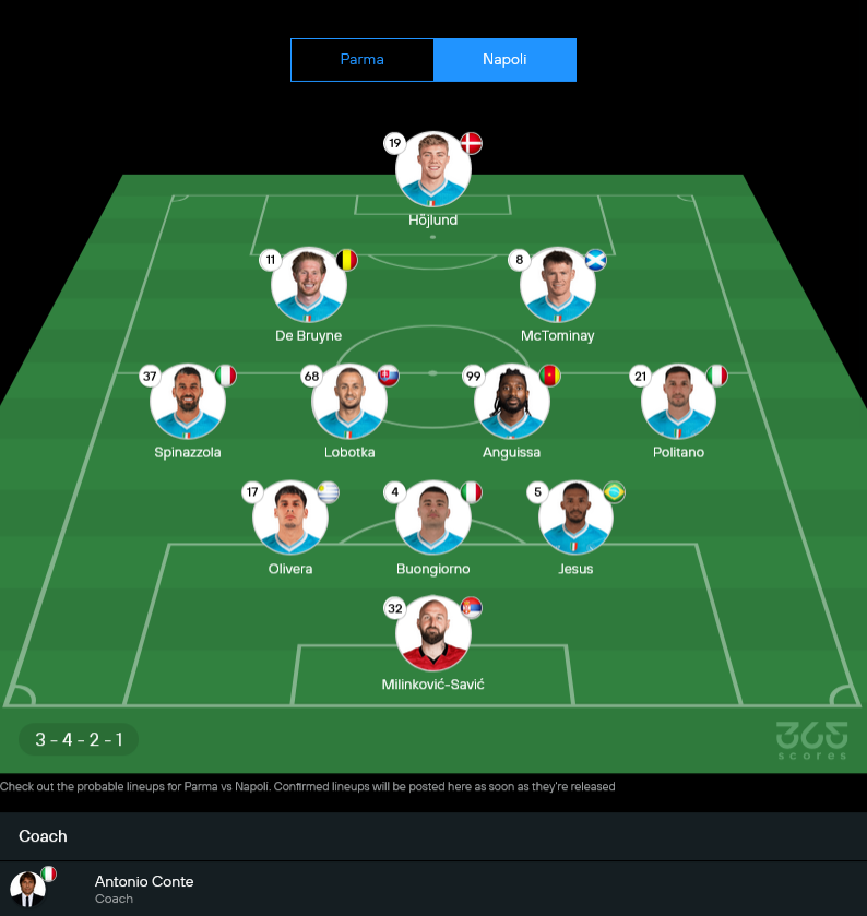 | 01/09/24 | เซเรีย อา | นาโปลี 2-1 ปาร์ม่า |