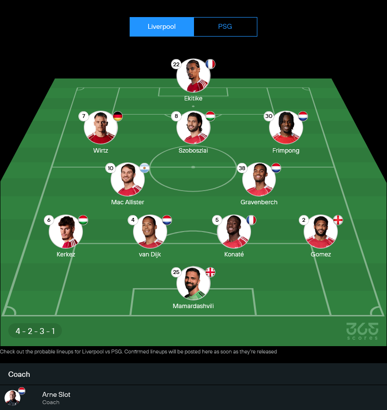 ลิเวอร์พูลยังมีตัวเจ็บหลายราย ทั้ง Curtis Jones, Alisson Becker, Wataru Endo, Giovanni Leoni และ Conor Bradley ทำให้การจัดทัพต้องเน้นคนที่ฟิตจริง เกมนี้มีแนวโน้มใช้ระบบ 4-2-3-1 เพื่อเปิดเกมบุกแต่ยังไม่ทิ้งสมดุลมากเกินไป ในมุม วิเคราะห์บอล จุดสำคัญของเจ้าถิ่นคือการเพรสเร็วและการขึ้นเกมจากแดนสอง ถ้าทำได้เนียนพอมีสิทธิ์กดเปแอสเชให้ถอยได้เหมือนกัน