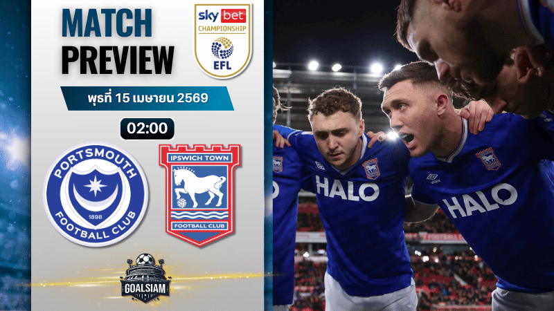 วิเคราะห์บอลก่อนแข่ง 15 เมษายน 2569 พอร์ทสมัธ vs อิปสวิช ทาวน์ ศึกนี้หนีตายปะทะล่าตั๋วเลื่อนชั้น ใครแน่กว่ากันที่แฟร็ตตัน พาร์ค