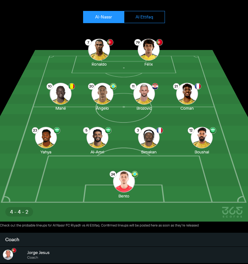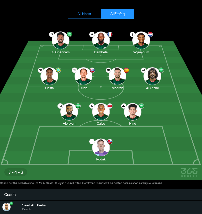 11 ตัวจริงคาดการณ์ อัล-เอตติฟาค (3-4-3)