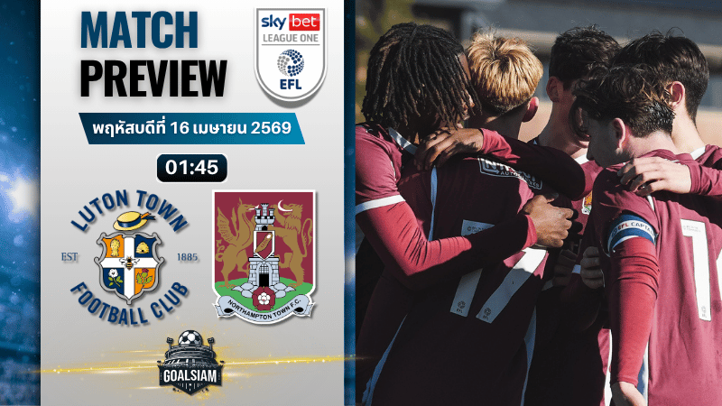 ศึก วิเคราะห์บอลก่อนแข่ง ลีก วัน อังกฤษ คืนวันพฤหัสบดีที่ 16 เมษายน 2569 คู่นี้มองมุมไหนก็ต้องบอกว่า ลูตัน ทาวน์ ดูดีกว่าพอสมควร ทั้งเรื่องฟอร์ม ความมั่นใจ และคุณภาพในเกมรุก ยิ่งเพิ่งต่อยอดผลงานได้สวยแบบนี้ บรรยากาศในทีมกำลังคึกสุดๆ ส่วน นอร์ทแฮมป์ตัน ตอนนี้สภาพเหมือนเครื่องรวน แพ้ต่อเนื่อง เกมรับมีรอยรั่ว เกมรุกก็ฝากความหวังได้ไม่มาก