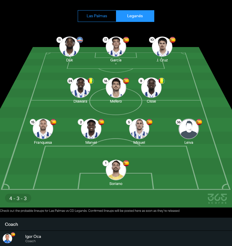 ทีมเยือนมีปัญหาตัวเจ็บอย่าง เปนญ่า และ ซาเอนซ์ ส่วน ซิสเซ่ ต้องเช็กฟิต แผน 4-3-3 เน้นรับให้แน่นแล้วสวนกลับ จุดเปราะคือเกมรับด้านข้าง
