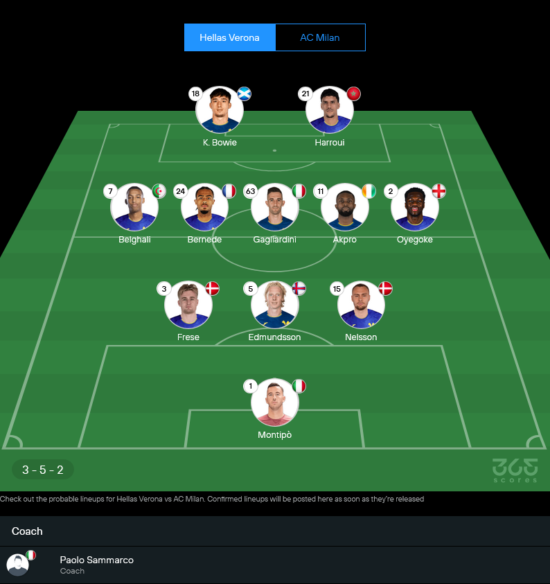 | 21/12/24 | เซเรีย อา | เวโรน่า 0-1 เอซี มิลาน |