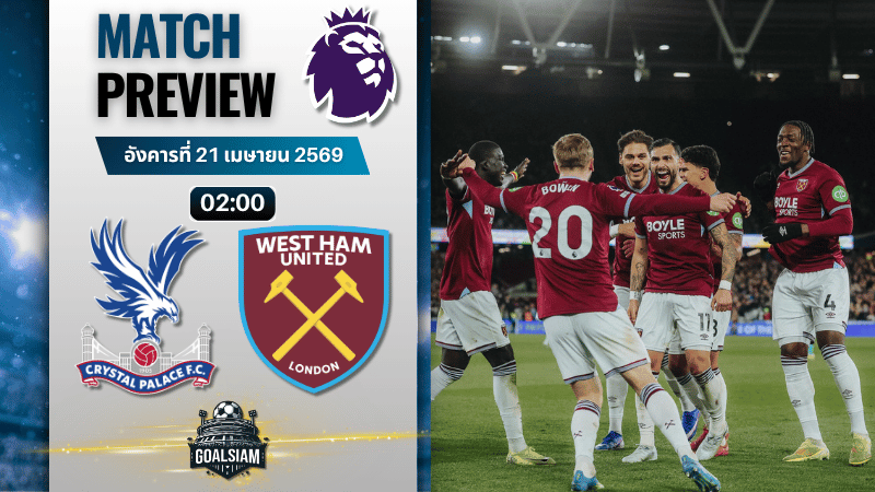 คืนวันอังคารที่ 21 เมษายน 2569 เวลา 02:00 น. เกมนี้ถือว่าเดือดใช้ได้สำหรับแฟนพรีเมียร์ลีก เพราะ คริสตัล พาเลซ จะเปิดบ้านรับ เวสต์แฮม ในแมตช์ลอนดอนที่ไม่มีใครอยากเสียหน้า พาเลซของ โอลิเวอร์ กลาสเนอร์ ได้เปรียบตรงเล่นต่อหน้าแฟนตัวเอง แต่ก็เพิ่งผ่านเกมยุโรปมาแบบกินแรงไม่น้อย ส่วนเวสต์แฮมของ นูโน่ เอสปิริโต้ ซานโต เริ่มตั้งลำได้ดีขึ้น โดยเฉพาะเกมล่าสุดที่อัดวูล์ฟส์ 4-0 แบบเรียกความมั่นใจกลับมาเต็ม ๆ