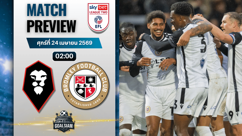 ทีมงาน GOALSIAM พามาดูเกม วิเคราะห์บอลก่อนเกม ลีก ทู อังกฤษ ที่น่าสนใจไม่น้อย ซัลฟอร์ด ซิตี้ เปิดบ้านรับบรอมลลีย์ คืนวันศุกร์นี้เวลา 02:00 น. เกมนี้สำคัญกับทั้งสองฝั่ง เพราะเจ้าถิ่นยังมีแรงฮึดกับพื้นที่หัวตาราง ส่วนทีมเยือนแม้อันดับดูดี แต่ฟอร์มระยะหลังเริ่มแกว่งให้เห็นชัดพอสมควร จึงเป็นอีกคู่ที่แฟนบอลสายตามเกม สายดูทรง และสายอ่าน ทีเด็ดบอล เชิงแท็กติกควรจับตา เพราะมีแววออกมาสูสี แต่รายละเอียดเล็กๆ ในเกมอาจเป็นตัวชี้ขาด