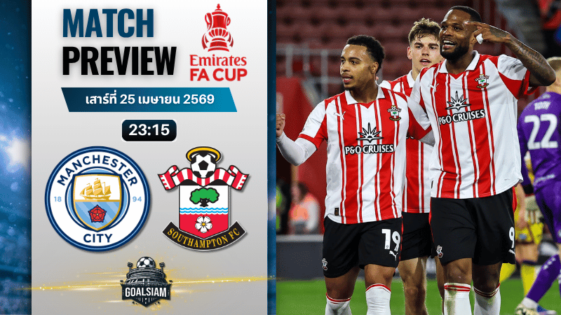 ศึกเอฟเอ คัพ อังกฤษ คืนวันเสาร์ที่ 25 เมษายน 2569 เวลา 23:15 น. ที่เวมบลีย์ เกมนี้ แมนเชสเตอร์ ซิตี้ ของ เป๊ป กวาร์ดิโอล่า เหนือกว่าชัดทั้งชื่อชั้น คุณภาพนักเตะ และฟอร์มล่าสุด แต่ เซาธ์แฮมป์ตัน ของ ตอนด้า เอ็กเคิร์ต ก็ไม่ใช่ทีมที่จะมาให้ยิงเล่นง่าย ๆ เพราะช่วงหลังฟอร์มแรง เกมสวนกลับมีทีเด็ด และบอลถ้วยรอบก่อนยังล้มทีมใหญ่มาแล้วด้วย ใครที่ตามอ่านทรงบอลเชิง ทีเด็ดบอล บอกเลยว่าคู่นี้มีรายละเอียดให้แกะเยอะกว่าที่ราคาเปิดมา