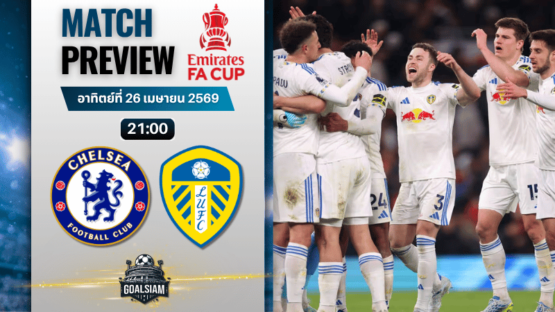ศึก วิเคราะห์บอลก่อนเกม เอฟเอ คัพ อังกฤษ วันอาทิตย์ที่ 26 เมษายน 2569 คู่นี้น่าดูตรงที่ชื่อชั้น เชลซี ยังดูข่ม แต่ฟอร์มจริงช่วงหลังไม่ได้น่าไว้ใจเลย เกมรับรั่ว เกมรุกฝืด แถมตัวหลักเดี้ยงเพียบ ส่วนลีดส์ของ ดาเนี่ยล ฟาร์เก้ กำลังมาด้วยทรงบอลแน่น วิ่งสู้ฟัด และเล่นเกมใหญ่ได้แสบพอตัว งานนี้ทีมงาน GOALSIAM มองว่าเป็นเกมที่เชลซีต้องพิสูจน์ตัวเองหนักมาก ส่วนคนที่ตามอ่าน ทีเด็ดบอล เพื่อดูทรงก่อนเตะ คู่นี้มีมุมให้คิดเยอะจริง