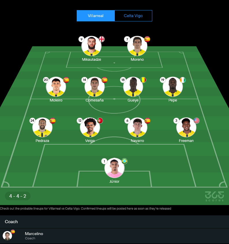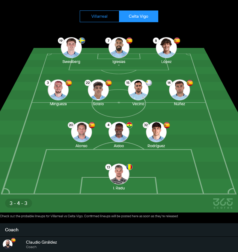 บียาร์เรอัลยังมีปัญหาผู้เล่นเจ็บในแนวรับและแดนกลางบางจุด โดย โลแกน คอสต้า เจ็บเข่า, เปา กาบาเนส เจ็บเอ็นไขว้หน้า และ ซานติอาโก้ มูรินโญ่ ยังต้องเช็กอาการเจ็บต้นขา แต่ข่าวดีคือ ซานติ โกเมซานญ่า พ้นโทษแบนกลับมา ทำให้แดนกลางมีความแน่นขึ้นทันที ในมุม วิเคราะห์บอล เกมนี้เจ้าบ้านน่าจะยึดระบบ 4-4-2 เน้นสมดุลระหว่างการคุมพื้นที่กับการเปิดบอลให้คู่หน้าเล่นงานแนวรับเซลต้า