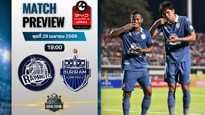 วิเคราะห์บอลก่อนเกม 29 เมษายน 2569 ระยอง เอฟซี ดวลบุรีรัมย์ ยูไนเต็ด ศึกนี้เจ้าถิ่นต้องวิ่งลืมเหนื่อย ไม่งั้นโดนปราสาทสายฟ้ากดทั้งคืน