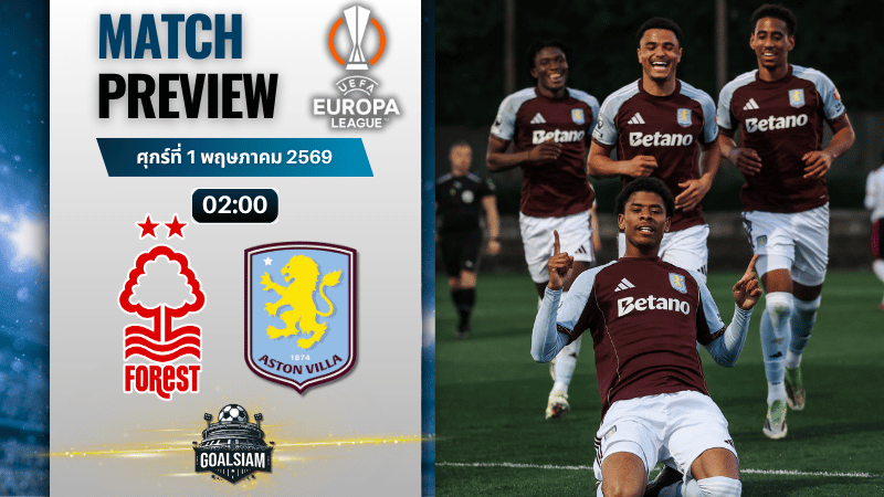 คืนวันศุกร์ที่ 1 พฤษภาคม 2569 เวลา 02.00 น. แฟนบอลมีคิวเดือดกับเกมยูฟ่า ยูโรปา ลีก ระหว่าง น็อตติ้งแฮม ฟอเรสต์ พบ แอสตัน วิลล่า ที่สนามซิตี้ กราวน์ด เกมนี้พูดกันแบบภาษาคนดูบอลคือไม่ต้องแต่งไฟเพิ่มก็ร้อนอยู่แล้ว เพราะเป็นสองทีมจากอังกฤษที่รู้ทางกันดี เจอกันทีไรมีจังหวะบวก จังหวะเบียด จังหวะเอาคืนให้เห็นตลอด GOALSIAM มองว่านี่คือเกมที่ใครพลาดก่อนมีสิทธิ์โดนลากไปลงหลุมทันที เพราะฟอเรสต์ช่วงหลังเล่นเหมือนทีมที่กำลังมั่นใจจัด ส่วนวิลล่าแม้ชื่อชั้นและประสบการณ์บอลยุโรปของ อูไน เอเมรี่ จะดูแน่นกว่า แต่ฟอร์มนอกบ้านยังมีรอยรั่วให้แฟน ๆ ต้องลุ้นเหนื่อย ใครกำลังตาม ทีเด็ดบอล ก่อนเกมนี้ บอกเลยว่าต้องอ่านให้ครบ เพราะรายละเอียดเล็ก ๆ อาจเป็นตัวตัดสินเกม