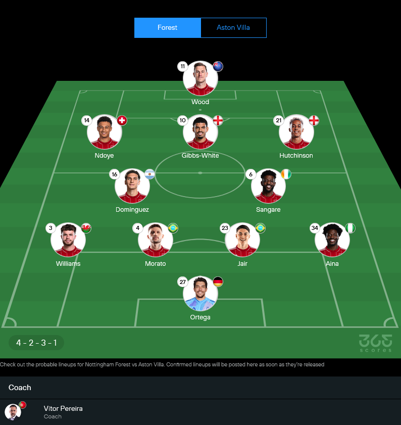 ฟอเรสต์ของ วิตอร์ เปไรร่า ยังต้องปวดหัวกับลิสต์แข้งเจ็บหลายราย ทั้ง คัลลั่ม ฮัดสัน-โอดอย, จอห์น วิกตอร์, มูริลโล่, นิโคโล่ ซาโวน่า และ วิลลี่ โบลี่ ซึ่งทำให้ตัวเลือกแนวรับกับริมเส้นหายไปพอสมควร แต่แผนหลักยังชัดเจนในระบบ 4-2-3-1 ใช้ คริส วู้ด ยืนหน้าเป้า โดยมี มอร์แกน กิ๊บบ์ส-ไวท์ เป็นตัวปั้นเกมตรงกลาง จุดนี้สำคัญมากสำหรับการ วิเคราะห์บอล เกมนี้ เพราะถ้า กิ๊บบ์ส-ไวท์ ได้หันหน้าเล่นบ่อย วิลล่าจะโดนแทงทะลุช่องให้ปวดหัวแน่
