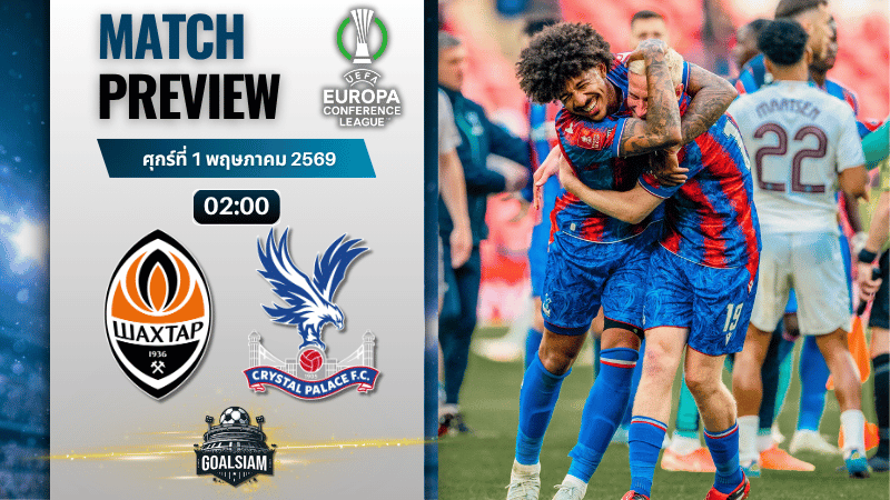 ยูฟ่า คอนเฟอเรนซ์ ลีก รอบรองชนะเลิศ เลกแรก คืนวันศุกร์ที่ 1 พฤษภาคม 2569 เวลา 02:00 น. คู่เดือดที่แฟนบอลห้ามกะพริบตาคือ ชัคห์ตาร์ โดเน็ตส์ค ปะทะ คริสตัล พาเลซ ที่สนามกลาง สตาดิโอน เมียจสกี้ อิม เฮนราก้า เรย์มานา เกมนี้ไม่ใช่งานเดินเล่นกินลมแน่นอน เพราะฝั่งหนึ่งคือทีมยูเครนที่บอลเทคนิคจัด ต่อบอลไว กัดไม่ปล่อย ส่วนอีกฝั่งคือทีมพรีเมียร์ลีกที่มีพลังปะทะ ความเร็ว และเกมสวนกลับคมระดับทำให้แนวรับฝั่งตรงข้ามหายใจไม่ทั่วท้อง
