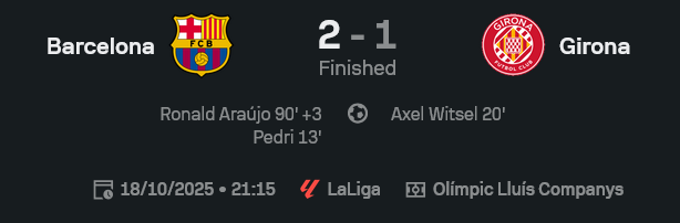 - ยิงทั้งหมด: บาร์เซโลน่า 27 | คิโรน่า 11