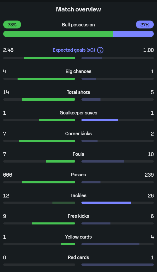 • Expected Goals (xG): บาร์ซ่า 2.48 / โอลิมเปียกอส 1.00