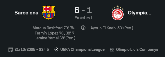 รูปเกมมันชัดเจนตั้งแต่เริ่ม บาร์ซ่ากดดันสูง ครองบอลเหนือกว่าแบบไม่ให้โอลิมเปียกอสได้หายใจ แดนกลางคุมเกมเบ็ดเสร็จแน่นอน ตัวทีเด็ดวันนี้คือ เฟร์มิน โลเปซ ที่กดแฮตทริกแบบเนียนๆ บวกกับ แรชฟอร์ด ที่ฟอร์มเข้าฝักจัดเต็ม เกมนี้จึงไม่ใช่แค่การชนะธรรมดา แต่เป็นการส่งสัญญาณว่า “เจ้าบุญทุ่ม” กลับมาน่ากลัวอีกครั้งในเวทีใหญ่ ใครจะ วิเคราะห์บอล คู่นี้ต่อจากนี้ต้องคิดหนัก เพราะบาร์ซ่ากำลังเข้าฝักจริง