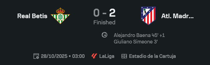 ถ้ามองมุม วิเคราะห์บอล เกมนี้ เบติสถือว่าทำได้ดีในเชิงรูปเกม พวกเขาครองบอลและสร้างโอกาสได้มากกว่า แต่ปัญหาใหญ่คือ “จบสกอร์ไม่ลง” และเจอกำแพงที่ชื่อ ยาน โอบลัค ซึ่งคว้าตำแหน่ง Man of the Match ไปแบบไม่ค้านสายตา ด้าน แอตฯ มาดริด โชว์ความเฉียบขาดเหมือนเดิม ยิงน้อยแต่มีคุณภาพ เล่นตามแผนซิเมโอเน่แบบเป๊ะ เกมรับแน่นเปรี๊ยะ ไม่มีหลุดเลยตลอด 90 นาที นี่คือบอลที่ถ้าพลาดแม้แต่นิดเดียวก็โดนลงโทษทันที