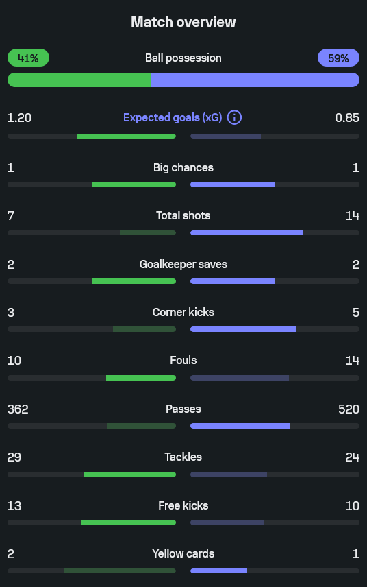 - ค่าคาดการณ์ประตู (xG): 1.20 – 0.85