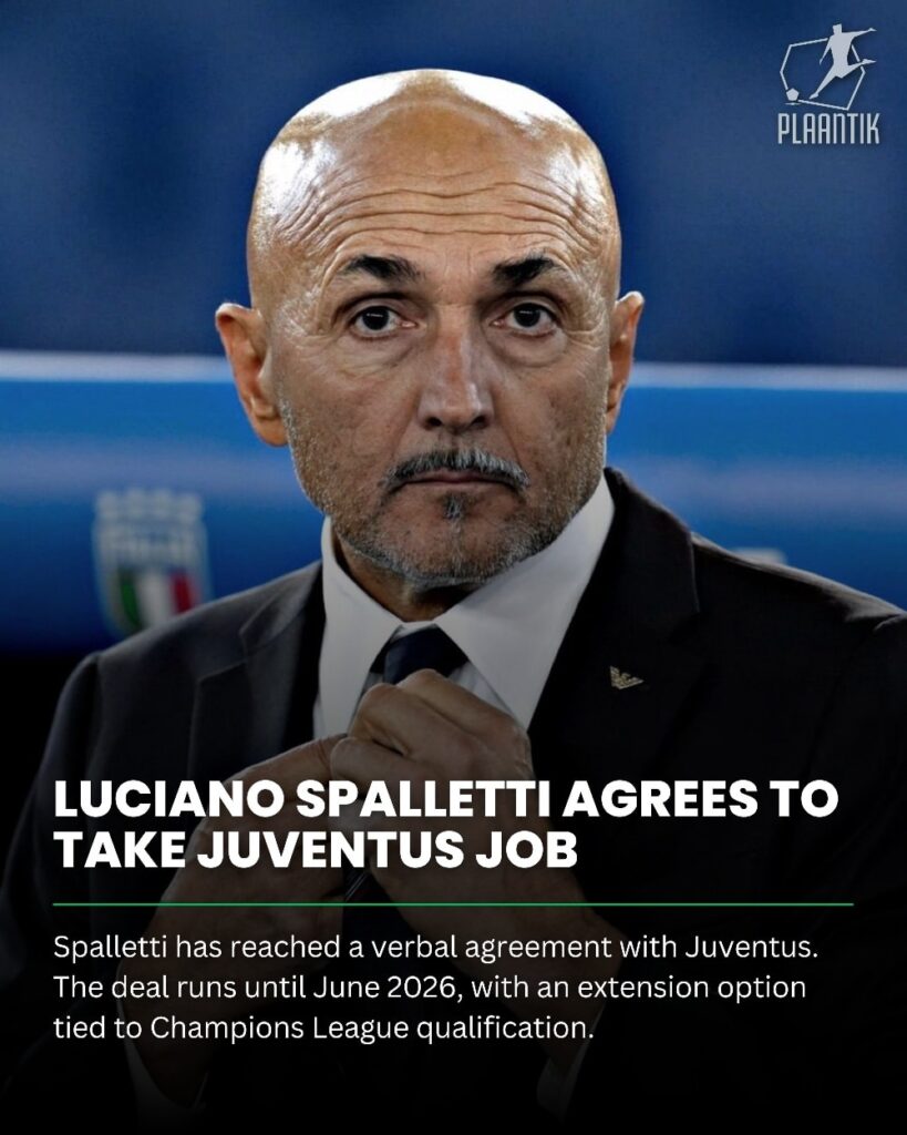 ความเคลื่อนไหวในถิ่น “ม้าลาย” ยูเวนตุส ยักษ์ใหญ่แห่งศึกกัลโช่ เซเรีย อา กลายเป็นข่าวใหญ่ทั่วอิตาลี หลังจากมีการยืนยันว่า ลูชาโน่ สปัลเล็ตติ อดีตกุนซือทีมชาติอิตาลี ตอบตกลงเข้ามานั่งเก้าอี้ผู้จัดการทีมคนใหม่อย่างเป็นทางการแล้ว โดยจะเซ็นสัญญาคุมทีมถึงเดือนมิถุนายน ปี 2026 พร้อมเงื่อนไขขยายเพิ่มอีกหนึ่งปี หากสามารถพาทีมกลับไปคว้าสิทธิ์ลุยศึก ยูฟ่า แชมเปียนส์ลีก ได้ตามเป้า