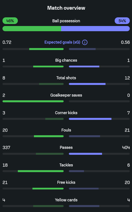 - เปอสซิญจ์การครองบอล: กาญารี่ 46% | ซัสเซาโล่ 54%